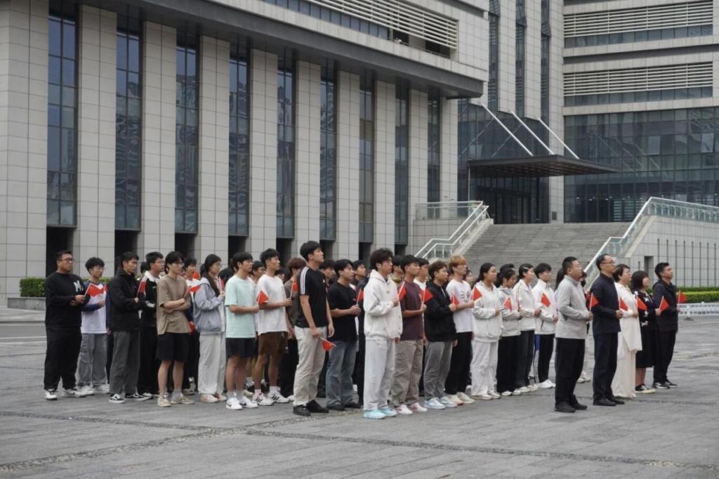 仪式最后,观礼师生齐唱《歌唱祖国》,师生们精神抖擞、激情澎湃,用歌声抒发着对祖国母亲的美好祝愿。
